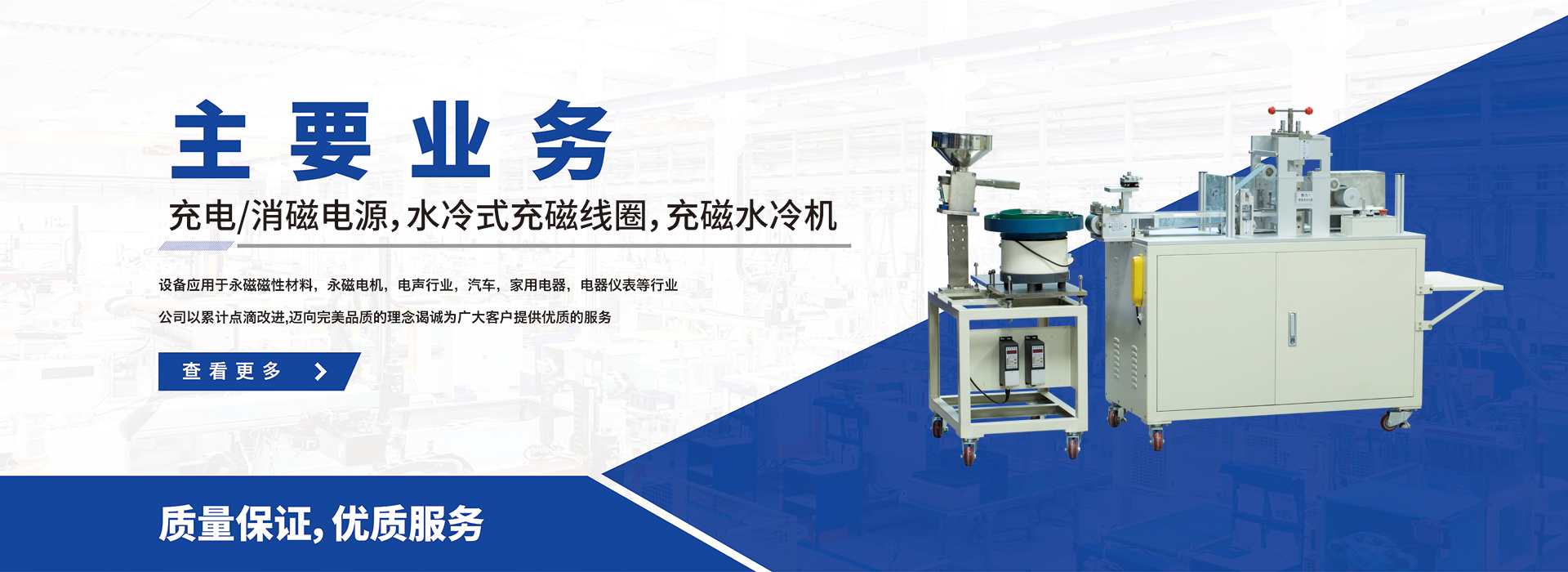 成立于2014年,公司主营研发生产,充/退磁电源,水冷式充磁线圈,水冷式平面多极充磁夹具,辐射环径向多极内/外充磁夹具,多极内/外斜充充磁夹具,辐射环内n外s充磁夹具,自动化充磁设备,电机转子充磁测试一体化设备,充磁水冷机,设备应用于永磁磁性材料,永磁电机,电声行业,汽车,家用电器,电器仪表等行业,公司以累计点滴改进,迈向完美品质的理念谒诚为广大客户提供优质的服务